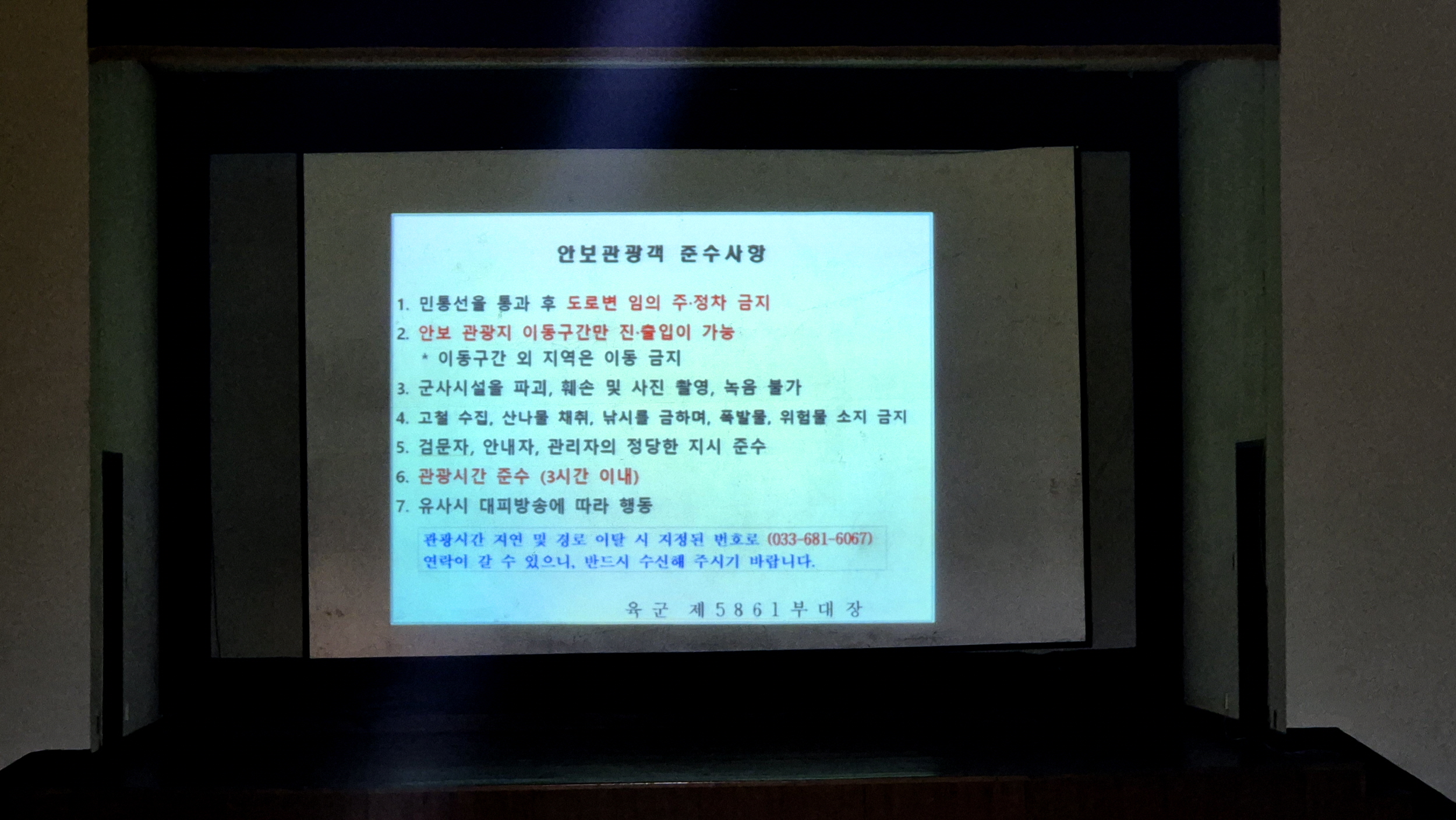 안보교육관에서 교육을 받고